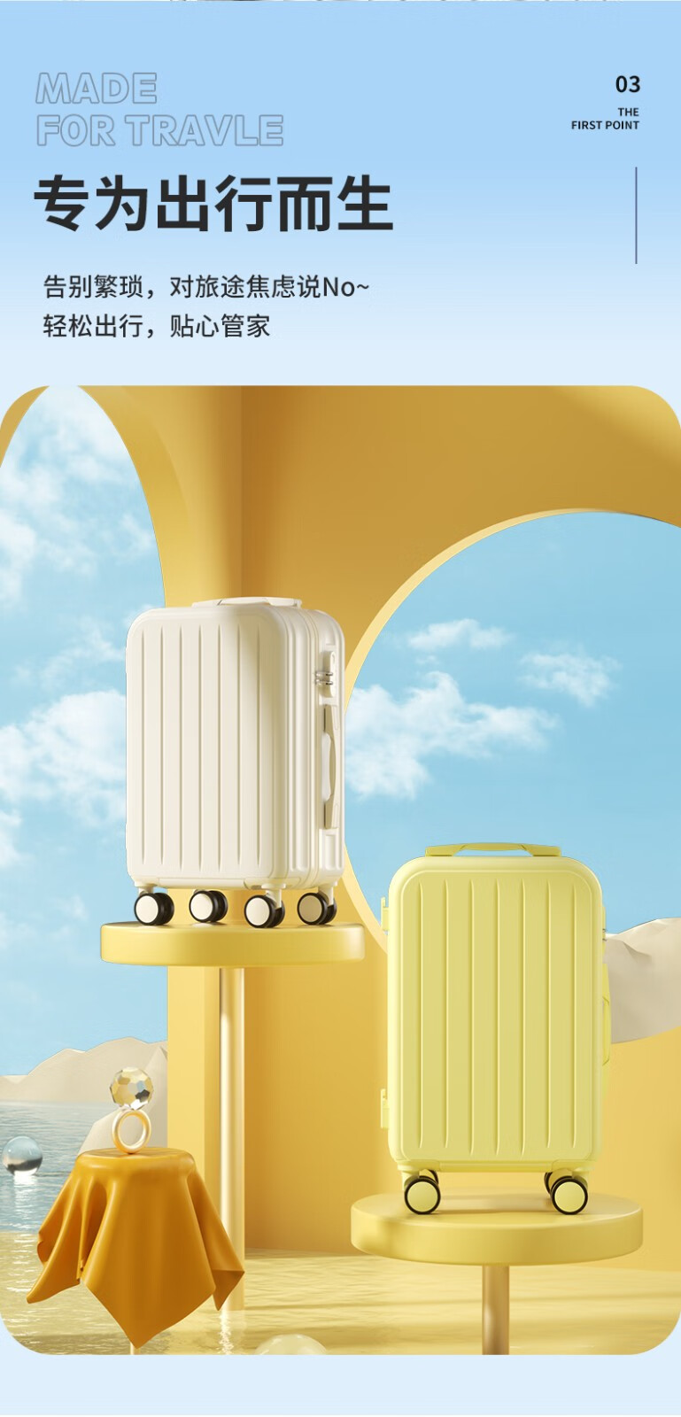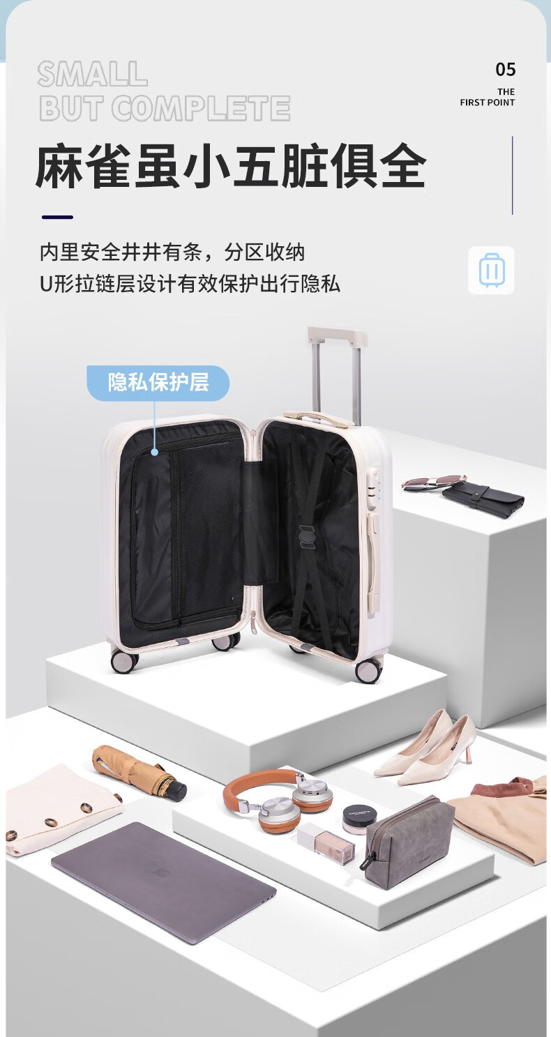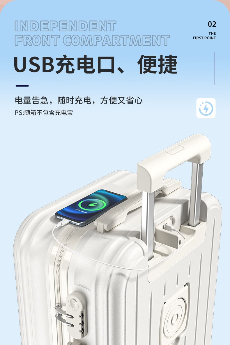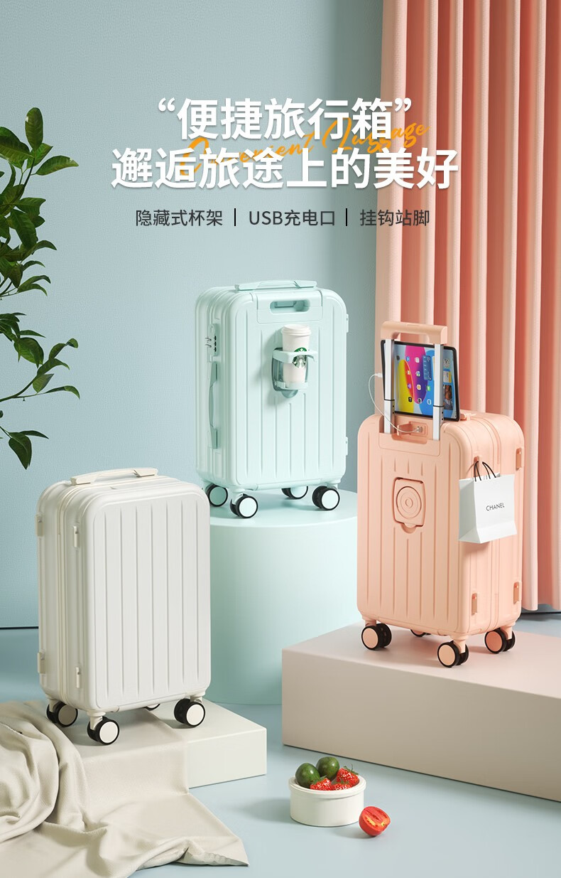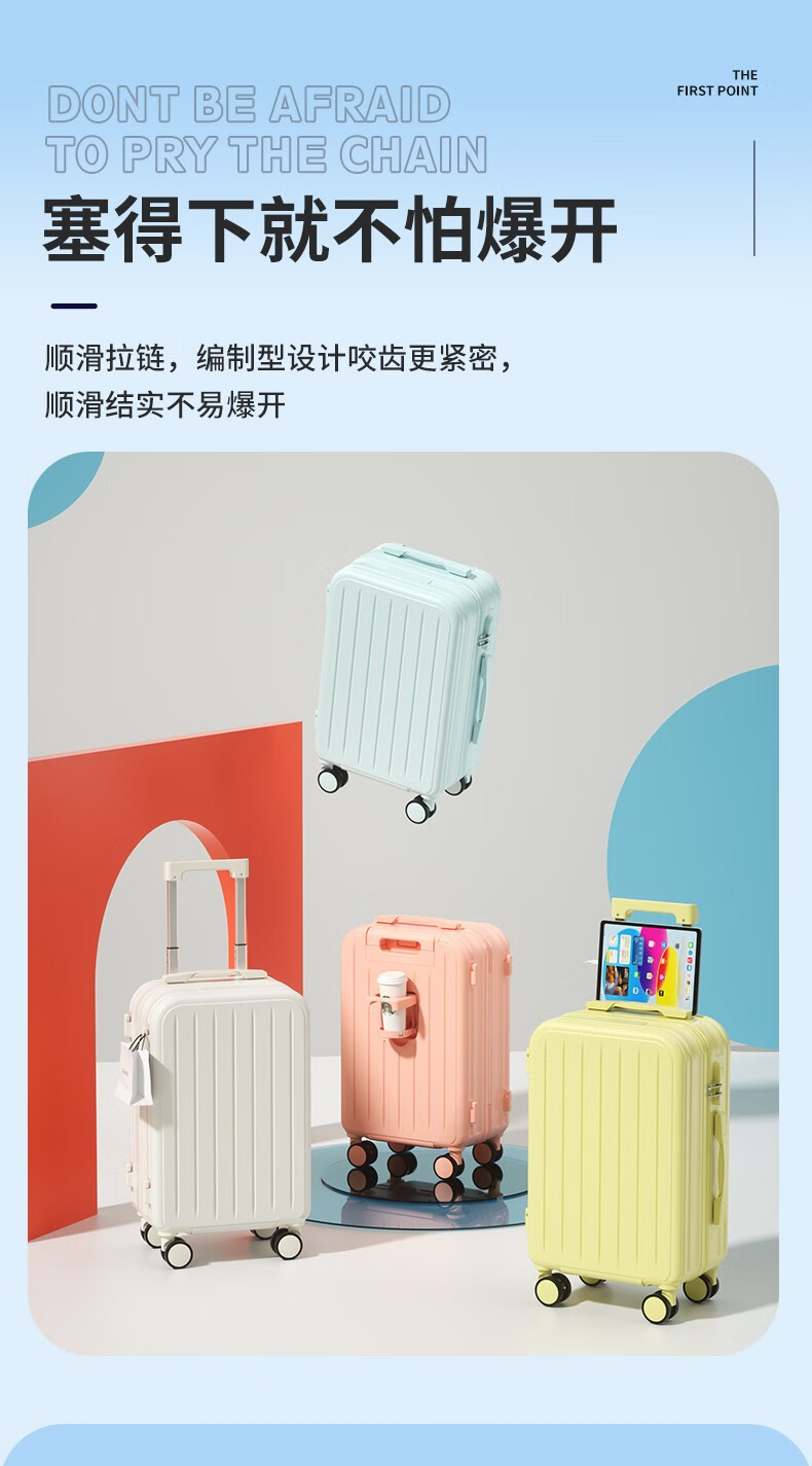 保罗蔻兹 PAUL COAZZ行李箱女多功能拉杆箱男轻音万向轮旅行箱学生小清新拉链密码箱 冰川蓝