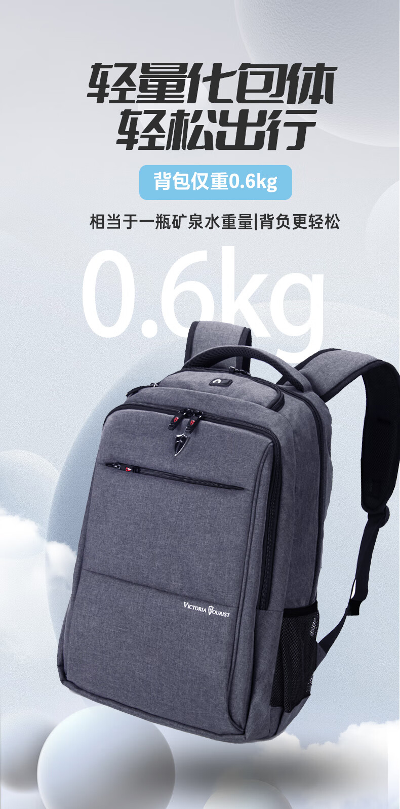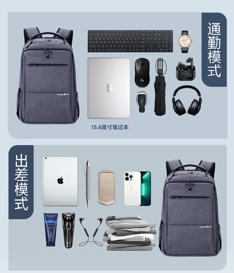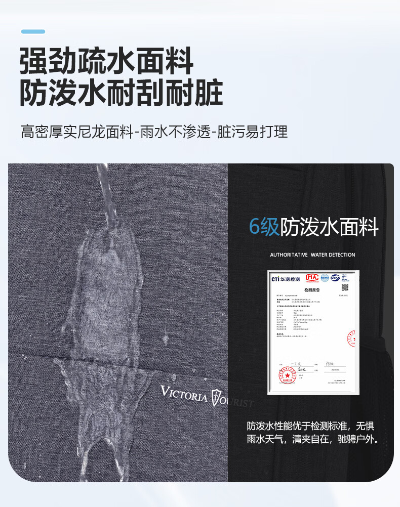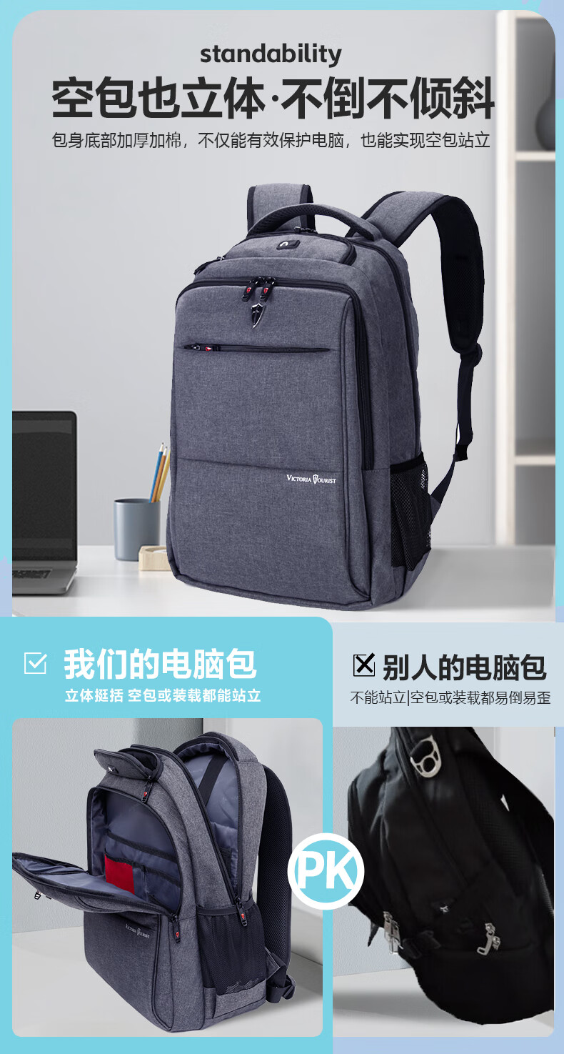 VICTORIATOURIST双肩包电脑包15.6英寸 男商务防泼水双肩背包书包V9006灰色
