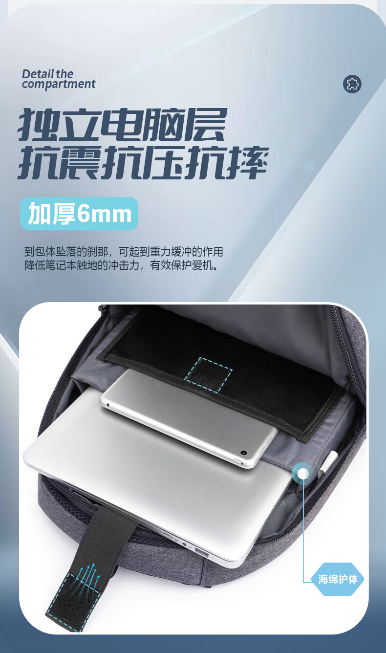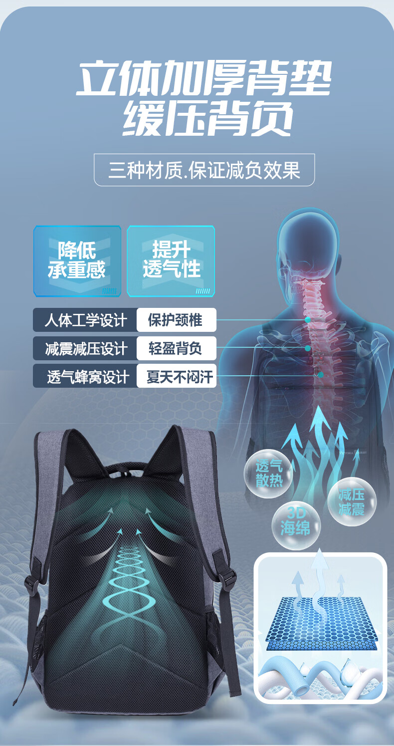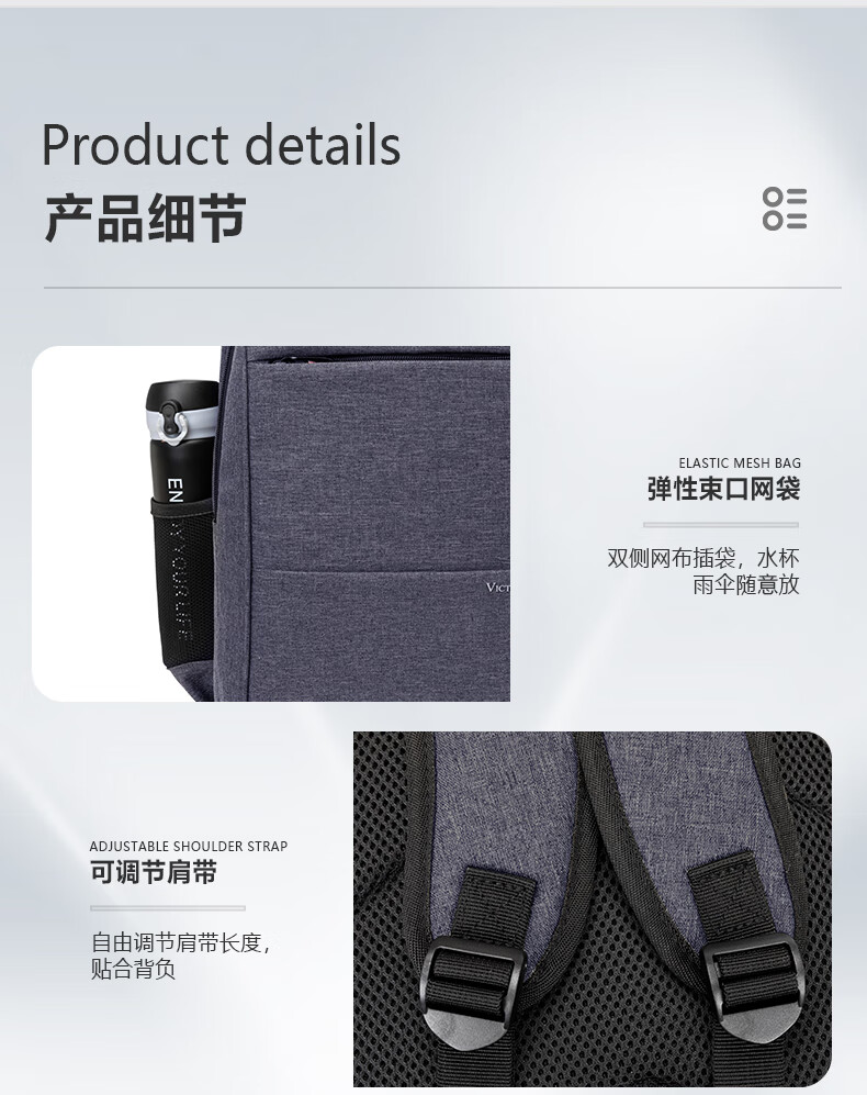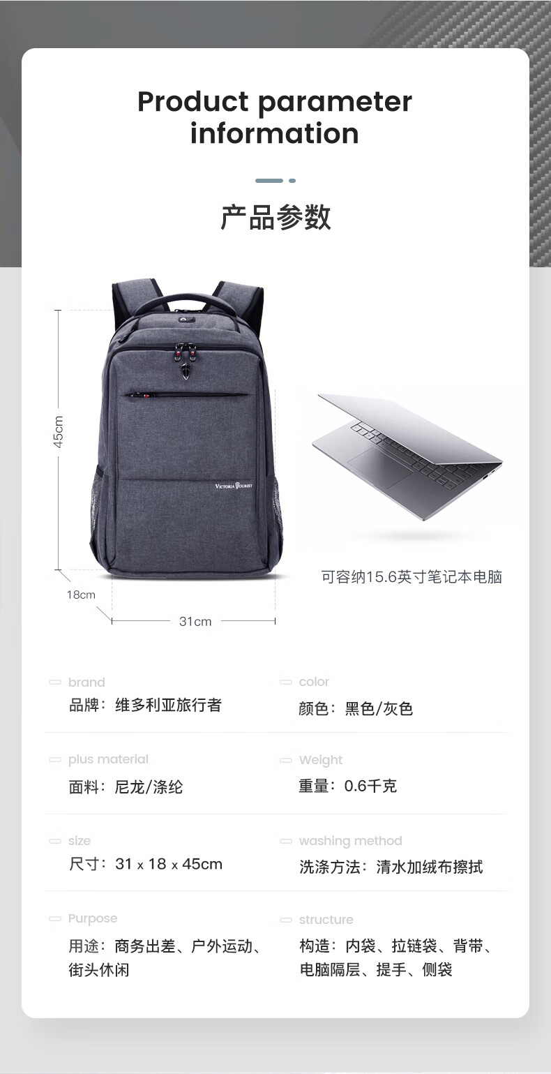 VICTORIATOURIST双肩包电脑包15.6英寸 男商务防泼水双肩背包书包V9006灰色