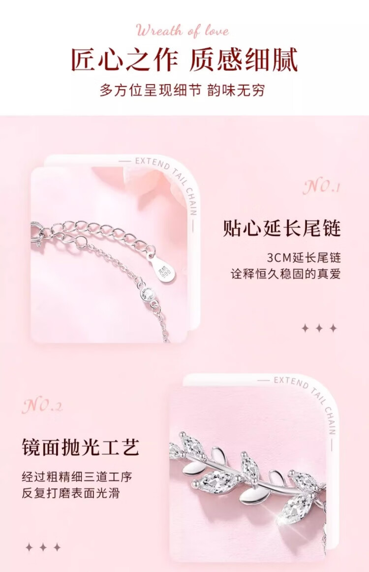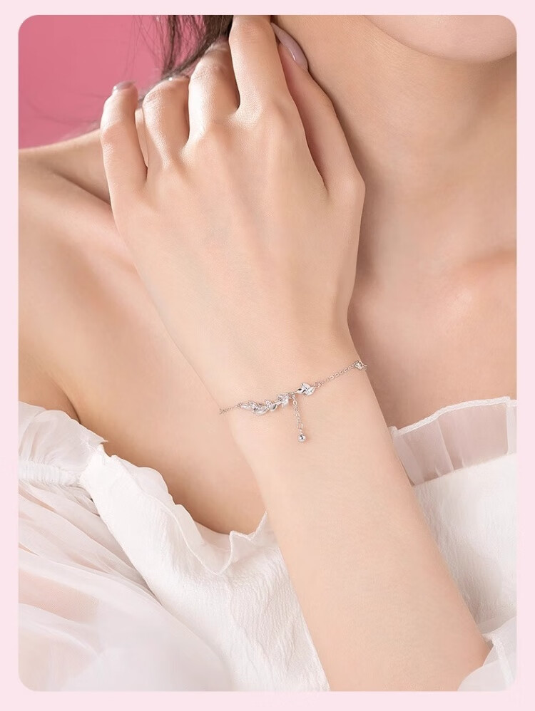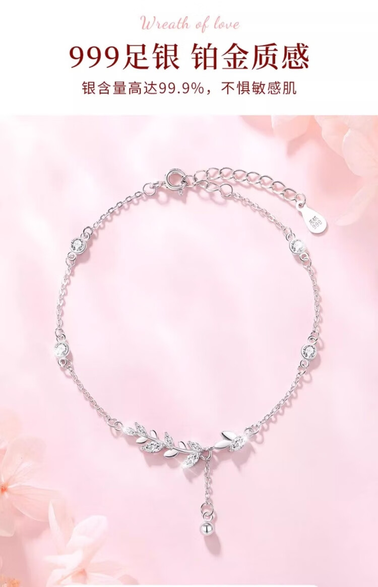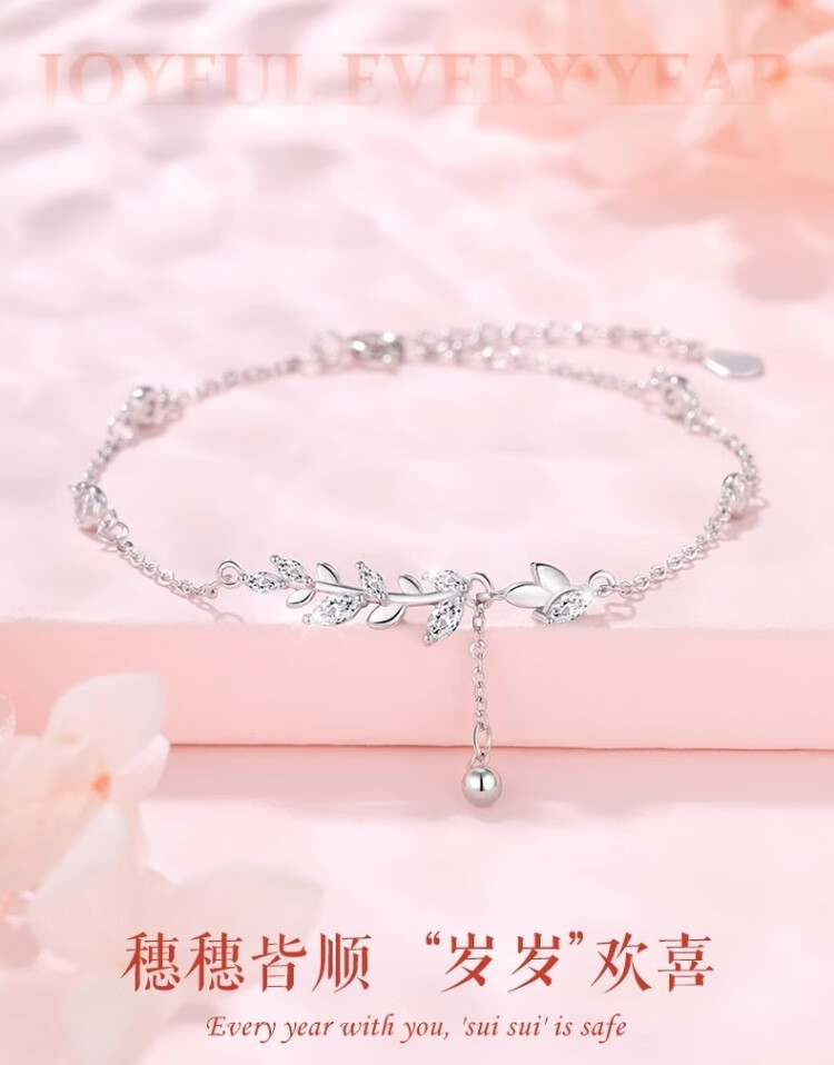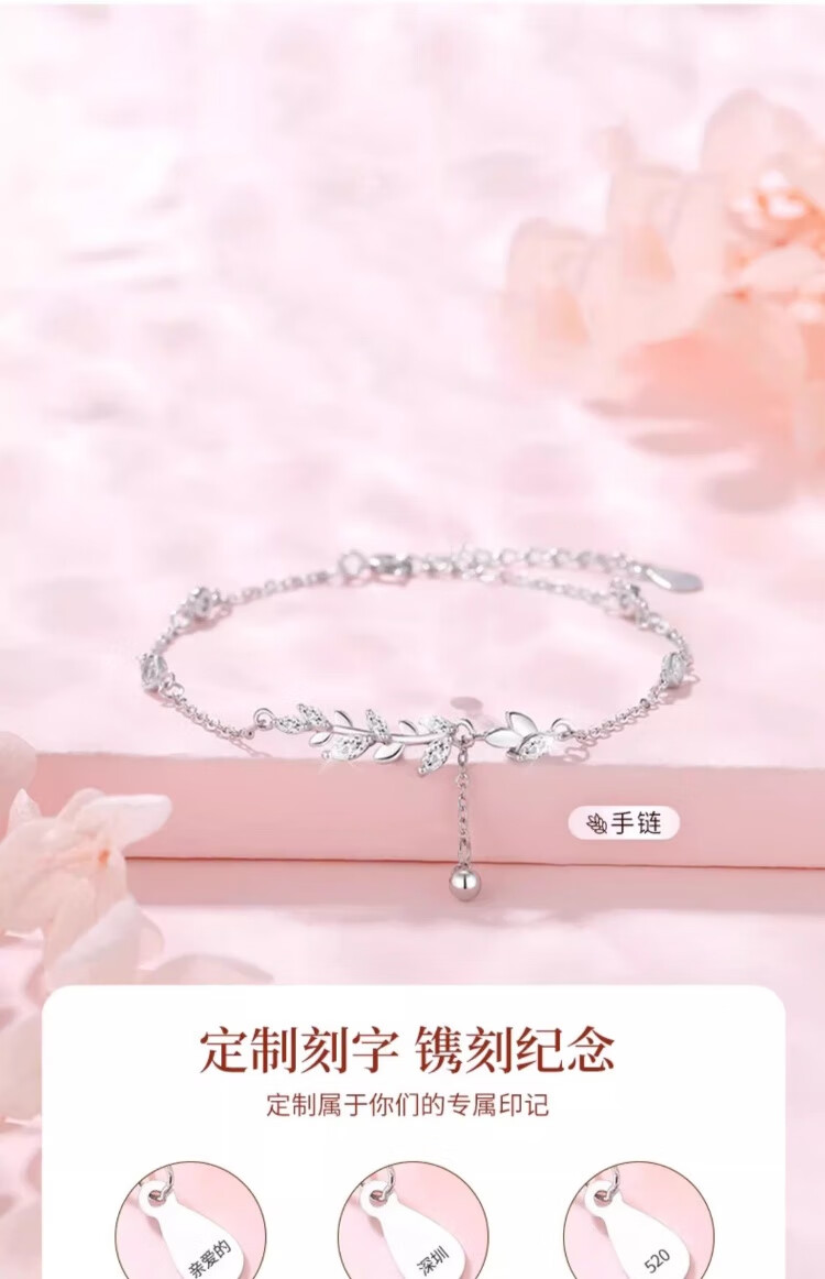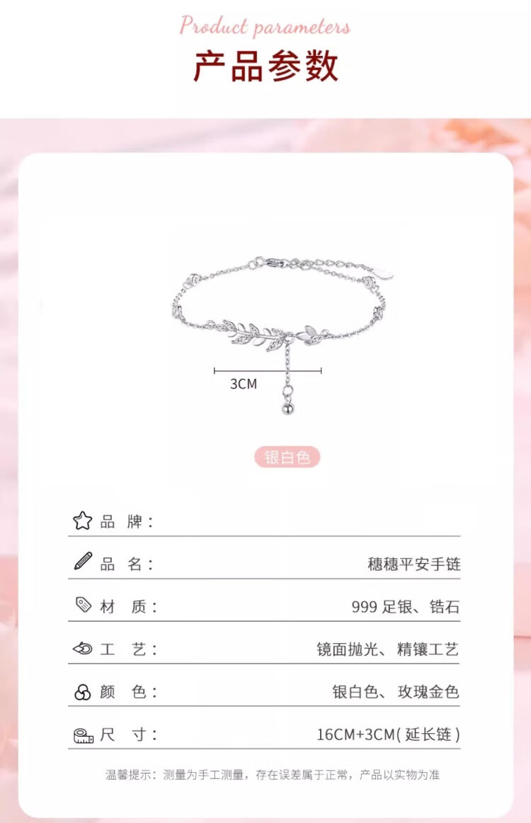 s999足银流苏麦穗手链镶钻甜美小清新纯银手饰送女友闺蜜生日礼物 麦穗999纯银手链